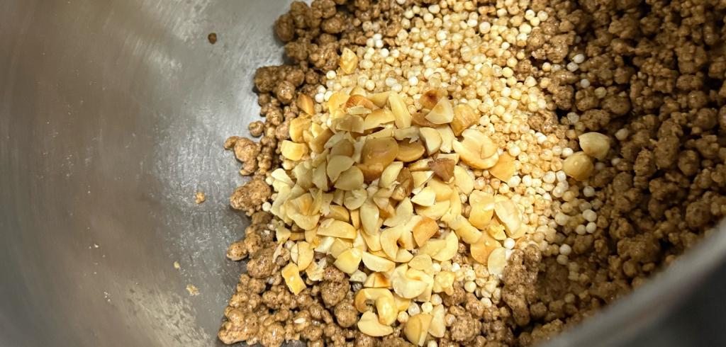We keep it simple. Nuts, seeds, puffed grains, a touch of coconut sugar and that’s pretty much it.